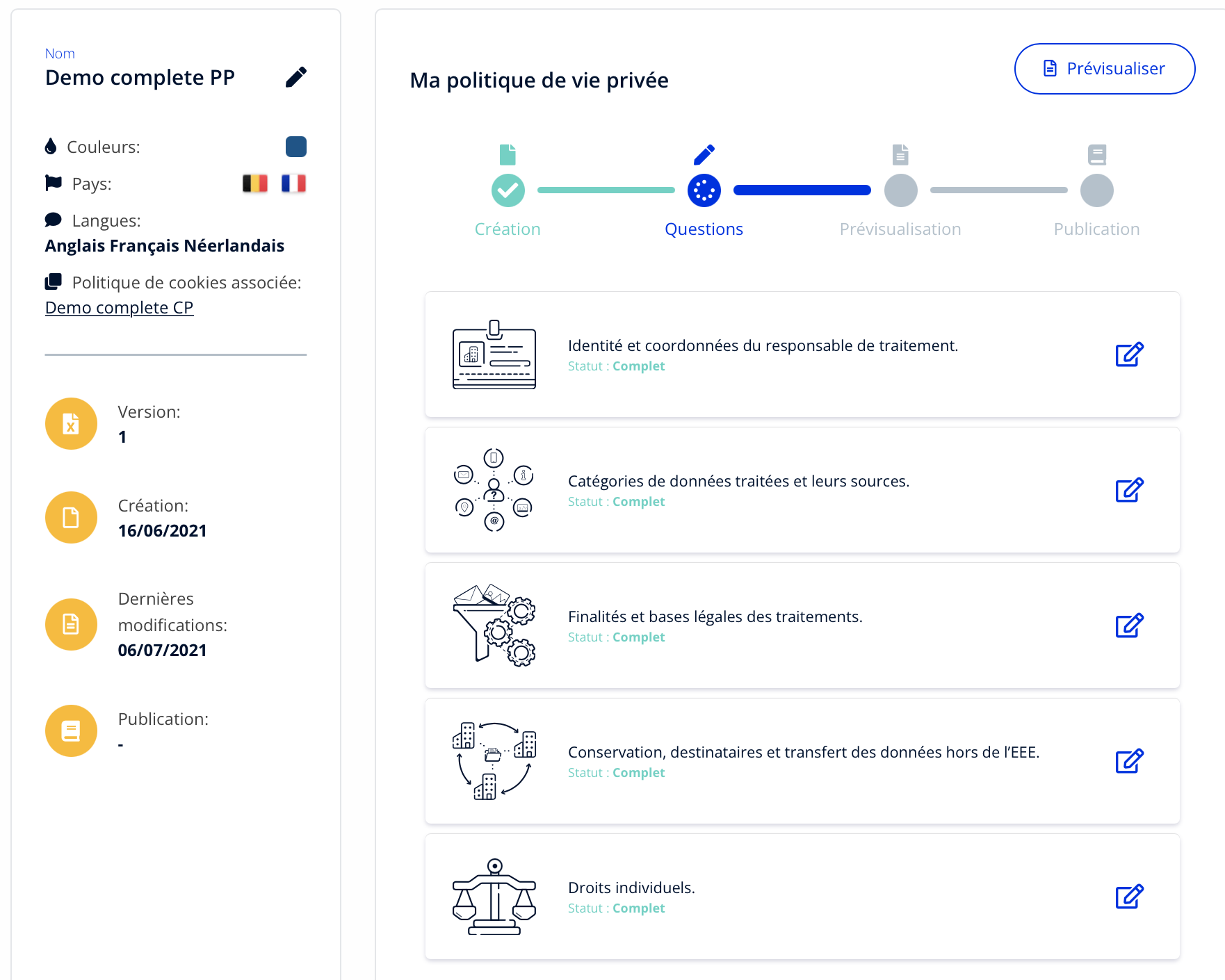 Créez, mettez à jour et archivez vos politiques de cookies et de confidentialité RGPD.
